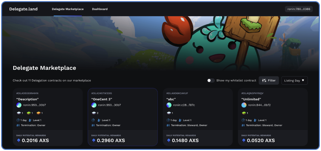 Step 1. Access the Land Delegation Marketplace: Start by visiting the Land Delegation Marketplace. This marketplace is where owners post their delegation listings.