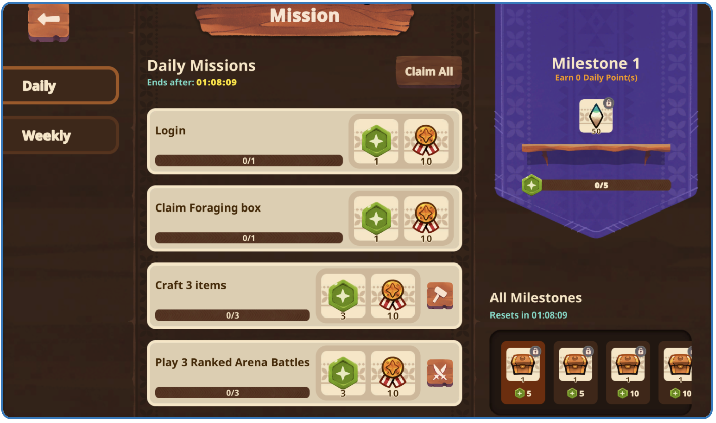 With the implementation of Missions, you can now earn reward from clearing the Daily & Weekly Missions.