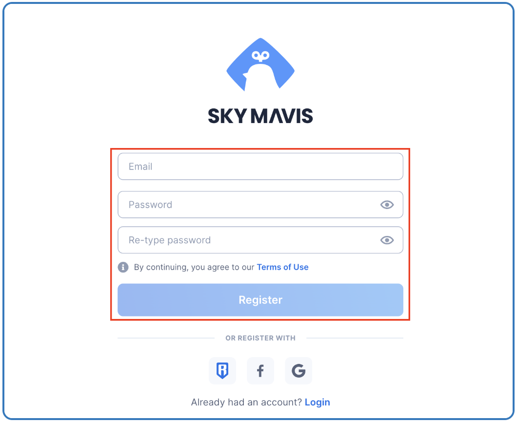 This will direct you to https://accounts.skymavis.com/register where you will be able to create your new Axie Infinity account.